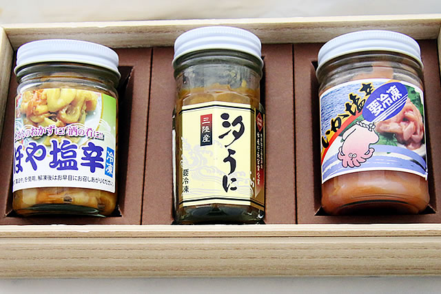【珍味3本セット】潮騒セットD(いか塩辛130g、汐うに65g、いくら醤油漬110g)