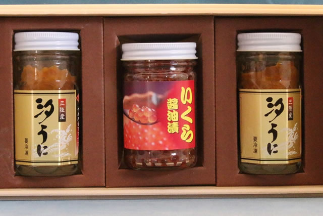 【珍味3本セット】黄金セットB(汐うに65g、焼うに80g、いくら醤油漬110g)