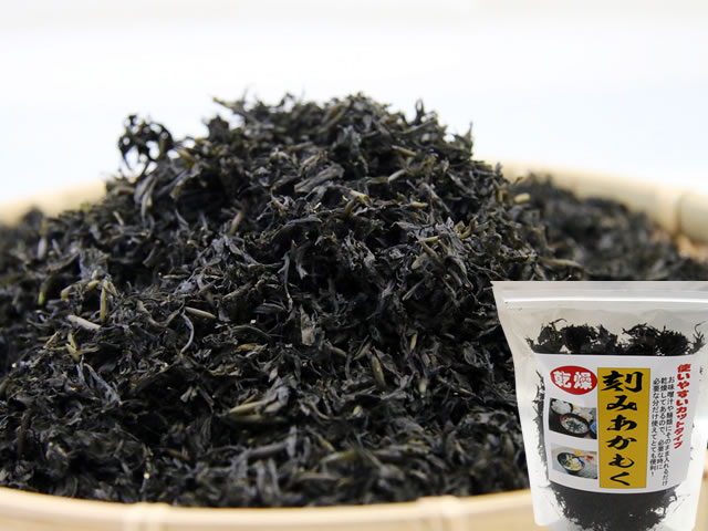 本商品「乾燥刻みあかもく」は、刈り取りされた生のアカモクを下処理(異物除去や太い部分の茎をカットなど)し、よく洗浄し、専用の機械で刻み乾燥した商品です。